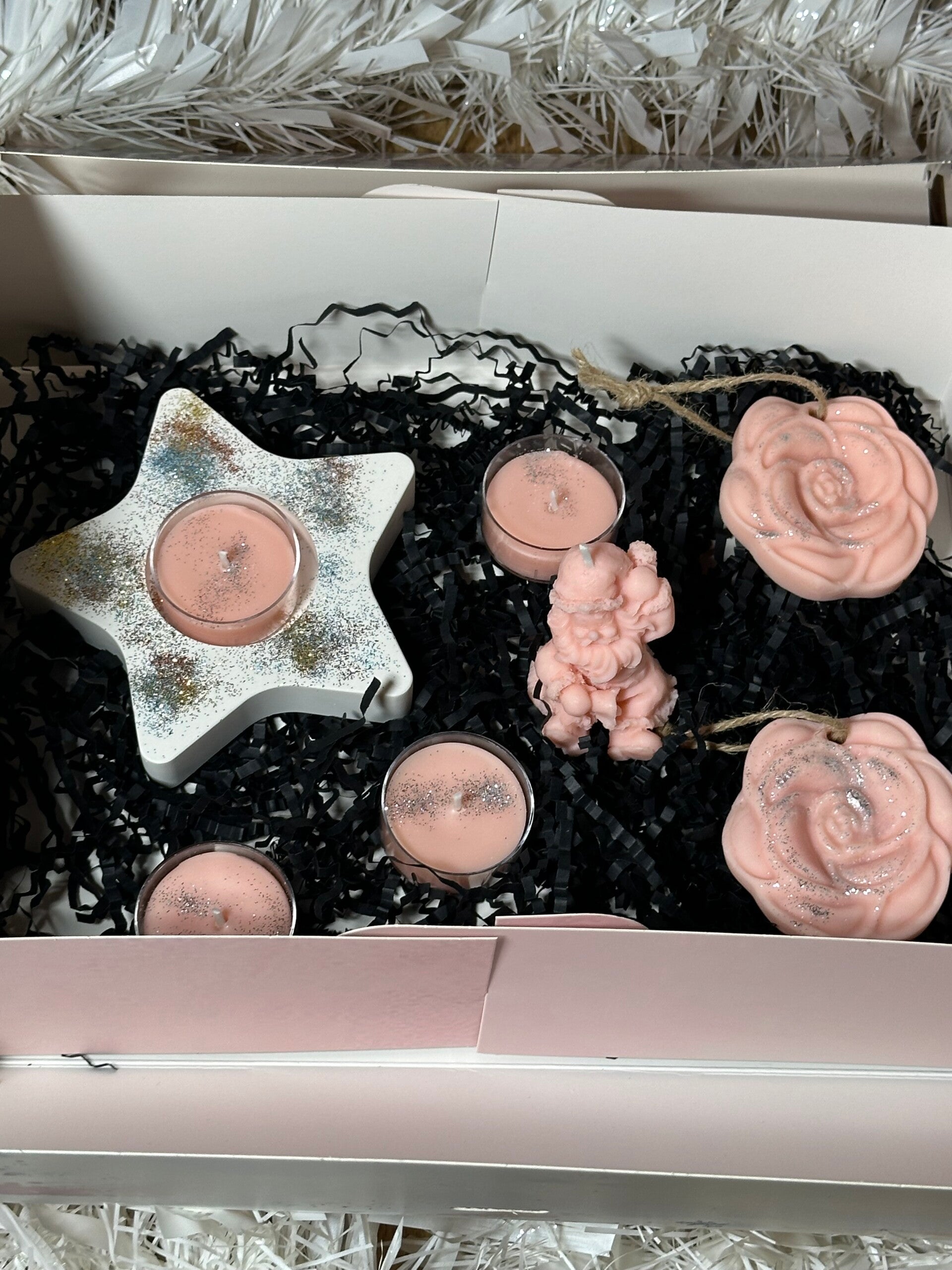 - Un support bougie en résine au choix entre « 🎄, ⭐️, ❤️. - 4 Mini Bougies « senteur au choix » - 1 bougie père Noël - 2 suspensions parfumées 🧑🏼🎄🎄🧑🏼🎄